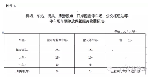 1.機(jī)場(chǎng)、車(chē)站、碼頭、旅游景點(diǎn)、口岸配套停車(chē)場(chǎng),公交樞紐站等停車(chē)場(chǎng)機(jī)動(dòng)車(chē)停放保管服務(wù)收費(fèi)標(biāo)準(zhǔn)
